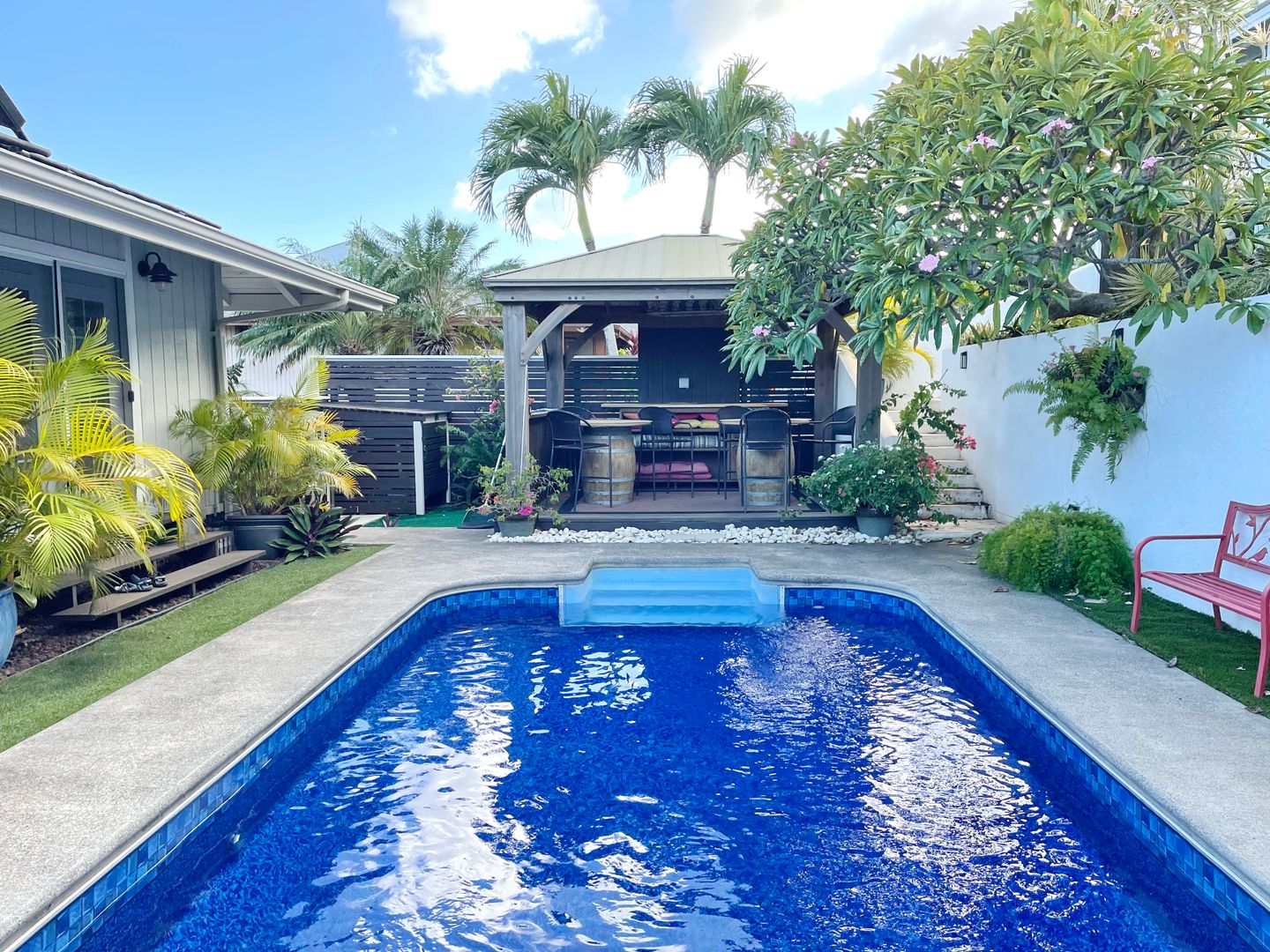 The downstairs ohana is currently rented to a quiet professional single person and the owners keep half the garage to store their Chevy Surburban. Included utilities are water/sewer (up to $250 a month), high speed WiFi internet & cable package, landscaping, pool service, and trash/refuse service. Tenant is responsible for electric, but electric there are ample Solar/PV panels with 3 Tesla backup batteries so historically the electric bills have been less than $50 a month. Tenant does not need to transfer any of these utilities into their name. Tenant would be responsible for obtaining and maintaining a renters insurance policy. No pets please. Available November 15th, 2025 for a one year term only with some flexibility on the exact end date.
