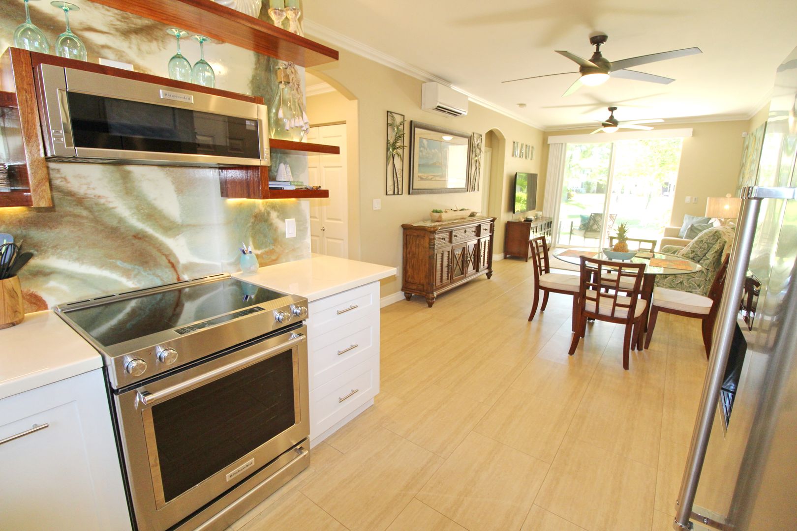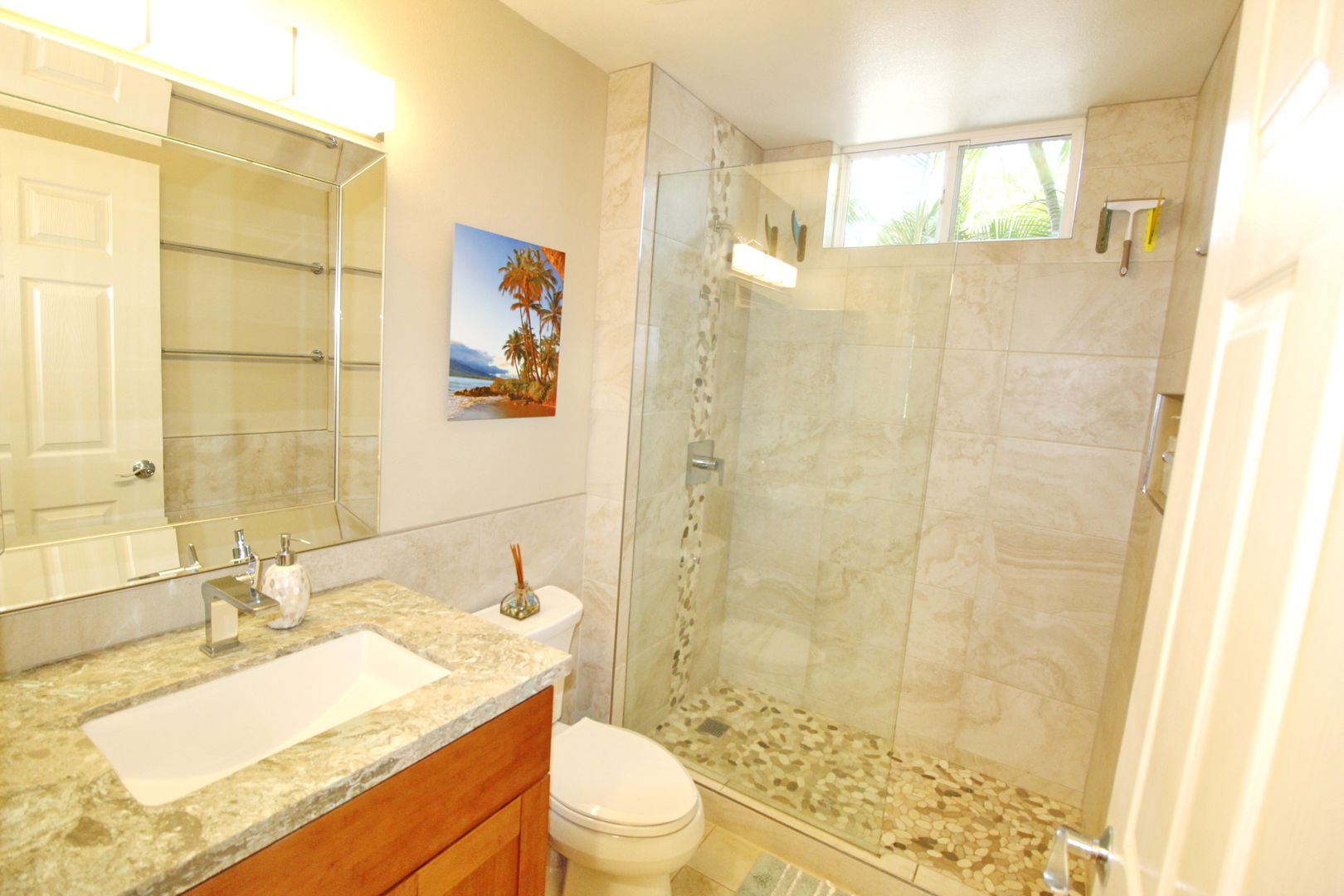 This abundantly furnished unit with high end furnishings offers the best of the Kihei lifestyle in a newly remodeled, ground level, corner unit located in the sweet spot of this highly desirable complex. Every last detail was considered in this modern renovation including new stainless steel appliances, new cabinets, quartz countertops in the bathrooms, luxury vinyl tile floors, crown molding, split AC system, dream closet system, upgraded window coverings and custom tile details in both showers. The open concept floor plan opens out onto a covered lanai and 9 acres of lush gardens. Take a swim in the heated saline pool, relax in the hot tub, keep up with your fitness at the gym, cook outside on the gas BBQ or walk across the street to one of the longest stretches of sandy beach on Maui. This complex does not allow short term/vacation rentals creating more of a quiet and relaxed environment. 2 parking spaces-one assigned and one unassigned along with the unit being very close to several visitor parking spaces for guests. Water/sewer, standard trash, landscaping, internet, keyless door entry and a security system by Vivint are all included in the rent. Tenant responsible for all other utilities including obtaining and maintaining renters insurance. Tenant also responsible for paying the monthly GET $202.62.