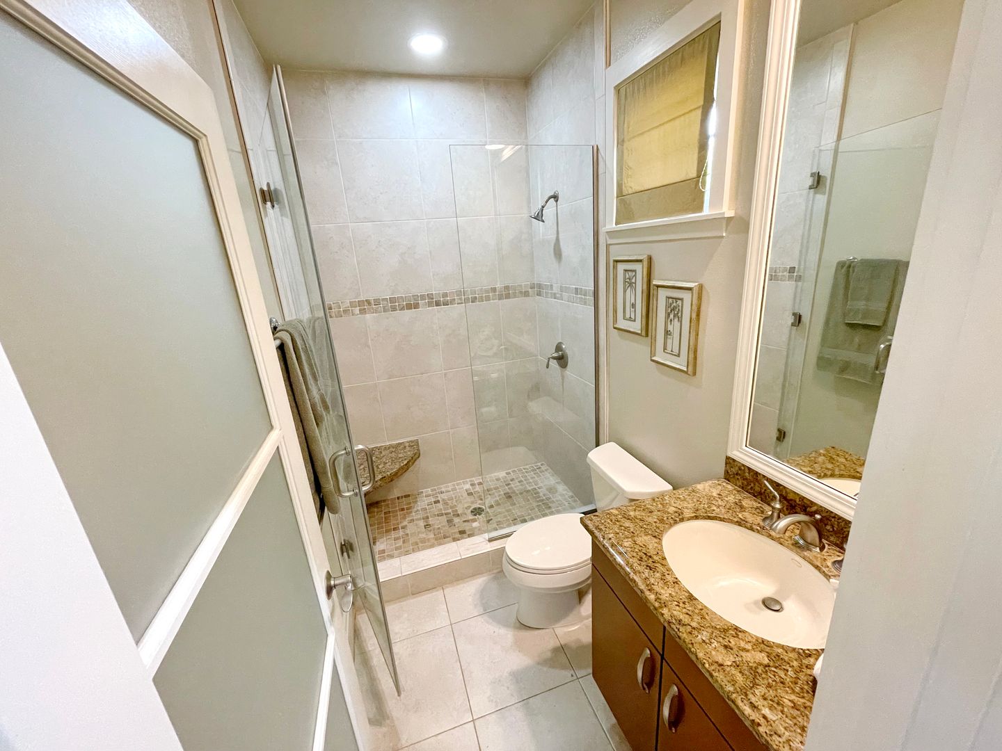 Each of the four spacious bedrooms features its own en-suite bath, ensuring ultimate privacy for family or guests. The fourth bedroom enjoys a unique level of seclusion—situated apart from the main residence with its own private courtyard entrance, making it ideal for visiting guests, a home office, or a serene retreat.