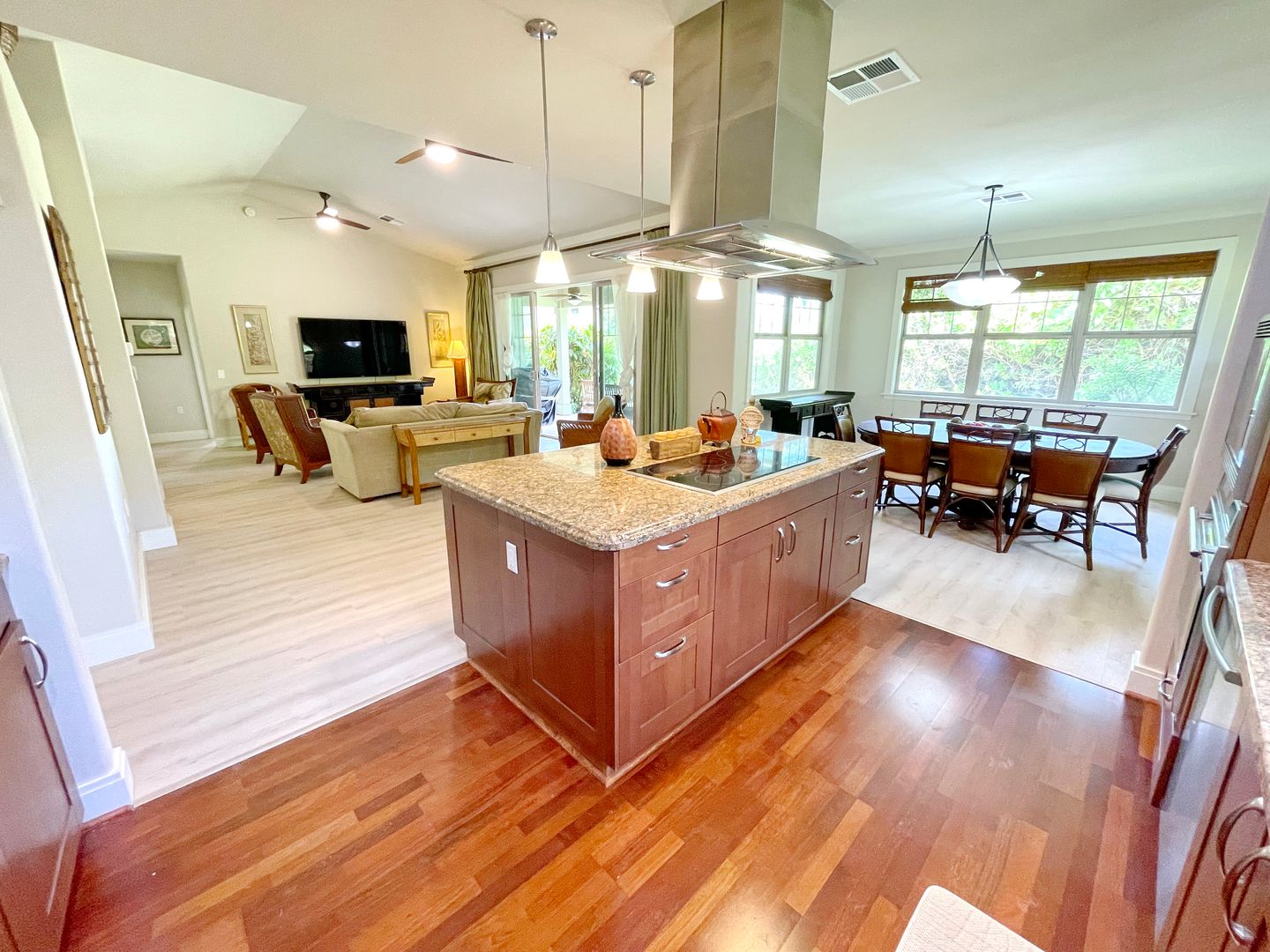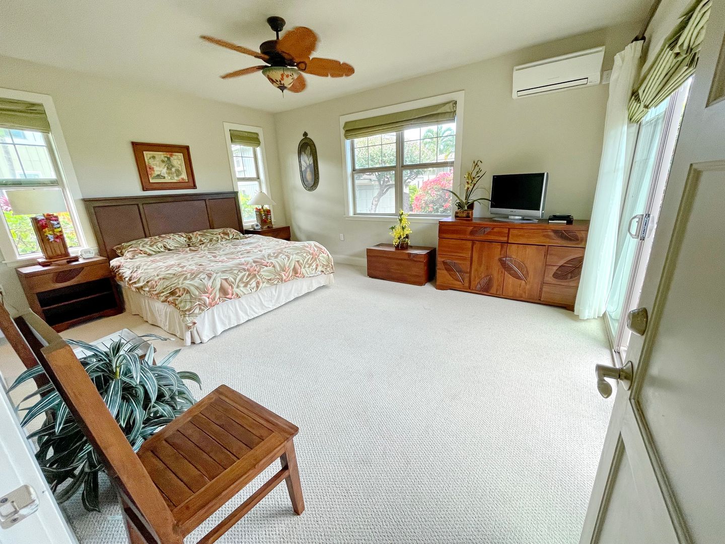 With over 2,175 square feet of light-filled interior space, this home welcomes you with an open-concept living and dining area, accented by oversized windows that frame ocean views and invite in the soothing Hawaiian breeze. The chef’s kitchen is appointed with premium appliances, generous counter space, and a layout perfect for both everyday living and upscale entertaining.