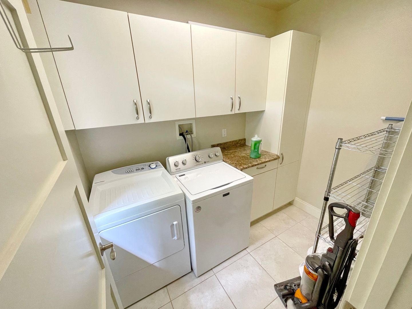 Step outside to your private covered lanai—a tranquil setting to enjoy morning coffee, sunset dinners, or evening gatherings under the stars. Additional features include a separate laundry room, a spacious two-car garage with ample storage, 32 photovoltaic panels for energy efficiency, and a central air conditioning system to ensure year-round comfort.