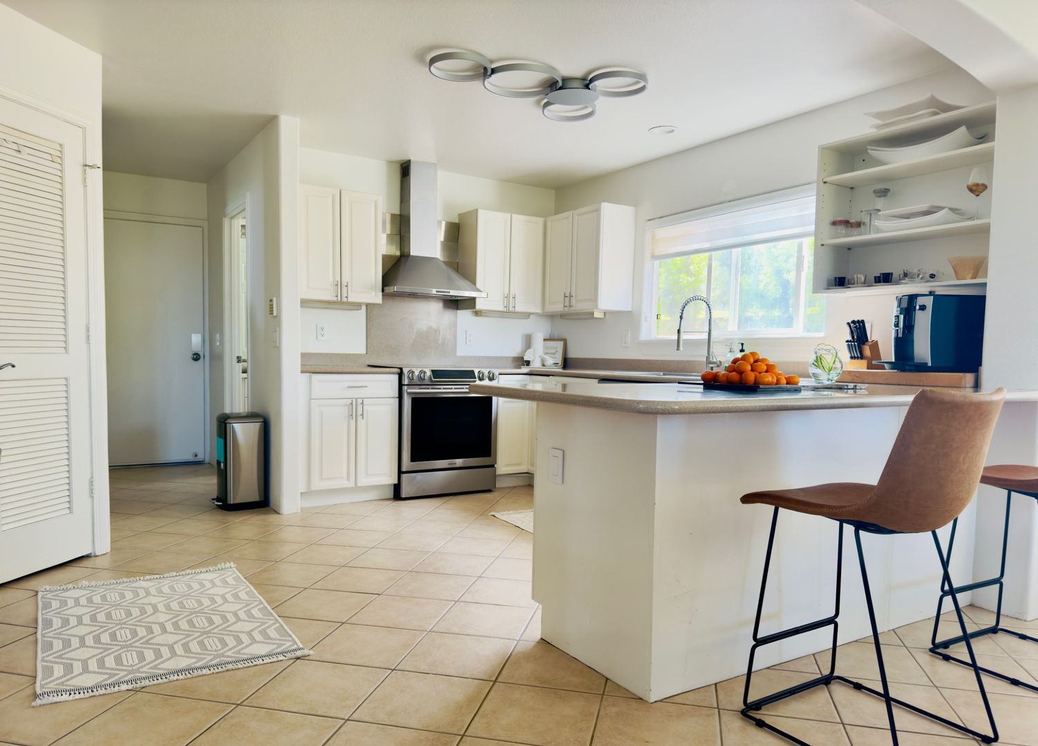 Equipped with premium stainless-steel appliances, an oversized island, and bar seating. Relax on the covered patio with lounge seating and BBQ, surrounded by lush, private landscaping.
