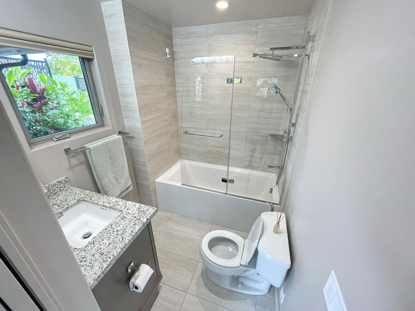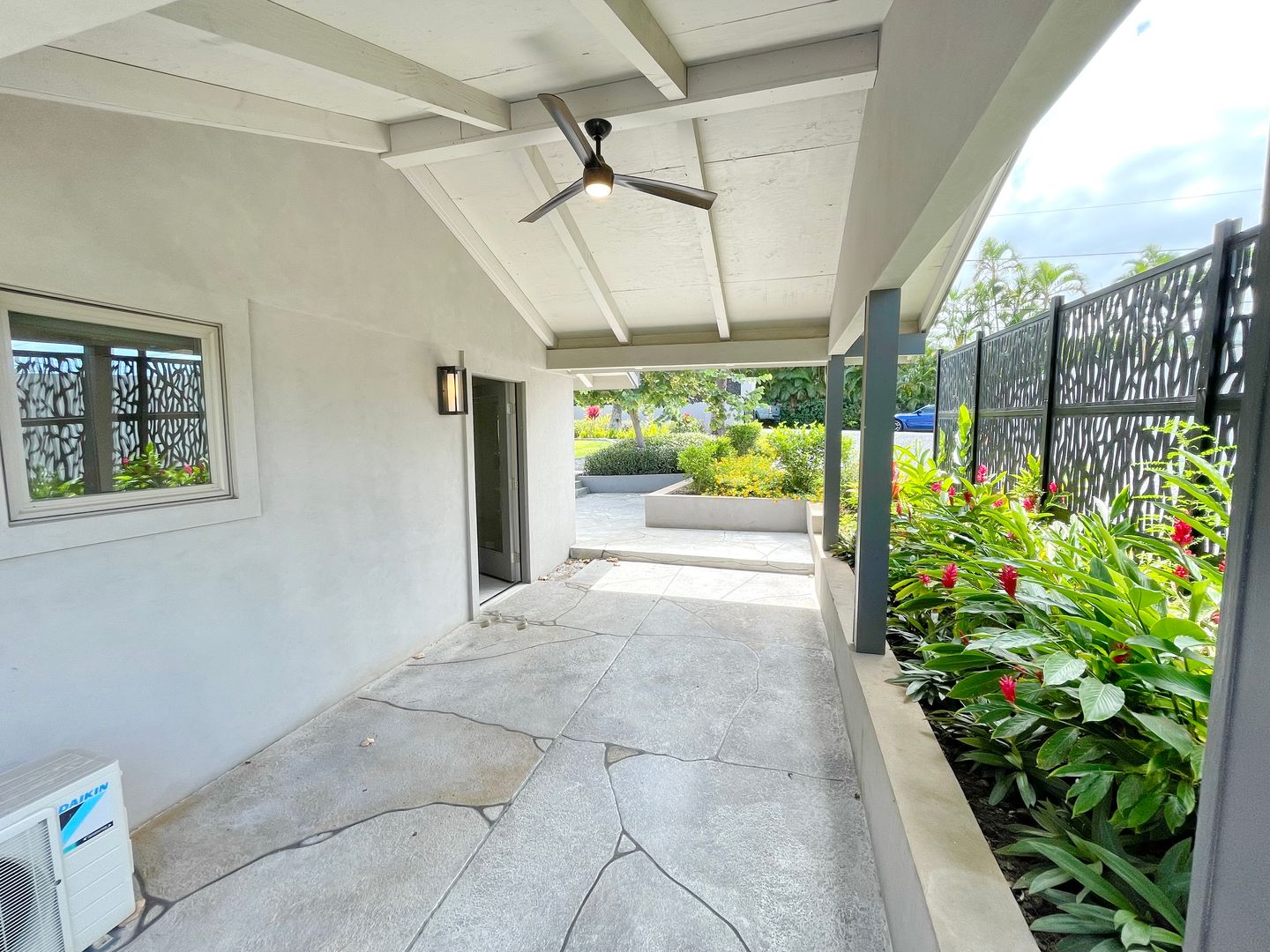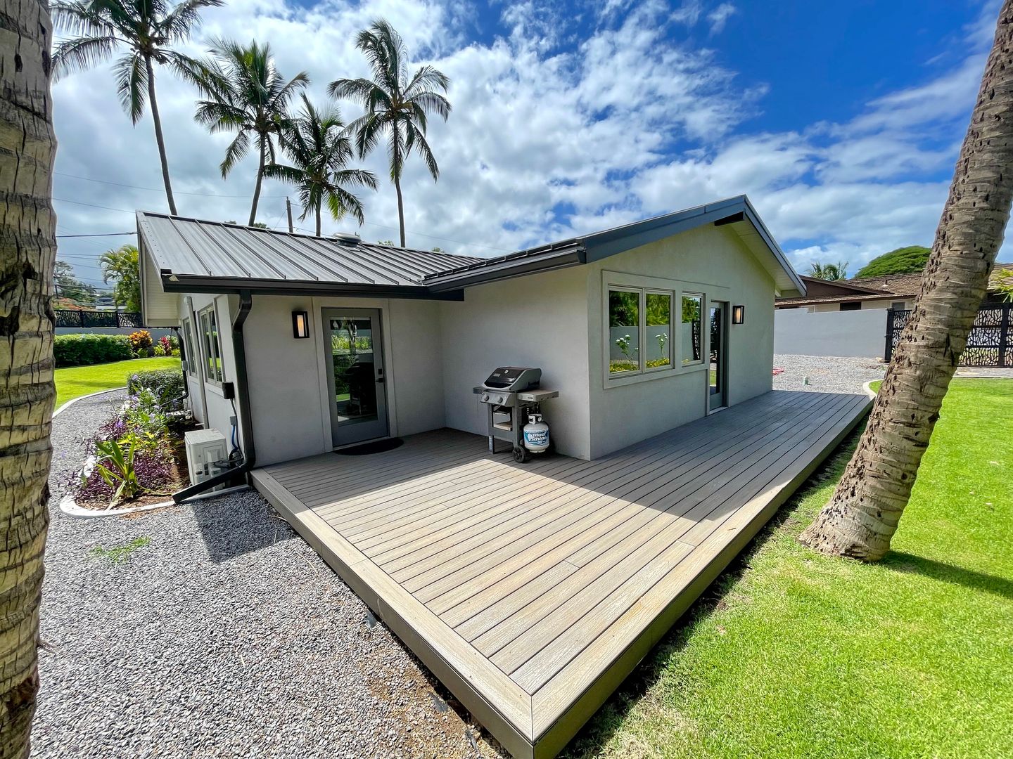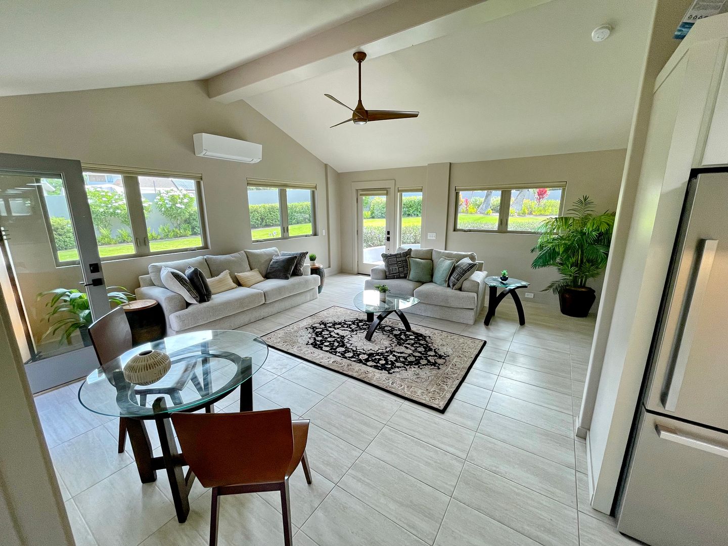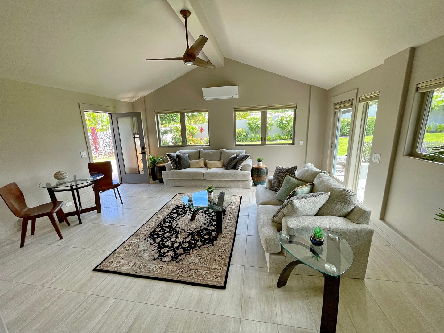 Step inside to cool tile flooring, granite countertops, and an open, breezy floor plan with vaulted ceilings and Pella windows that invite in the natural light. Enjoy your mornings or evenings on two private lanais—one open-air, one covered—ideal for relaxing with coffee or hosting casual get-togethers. There is so much room to spread out and relax in privacy on the property.