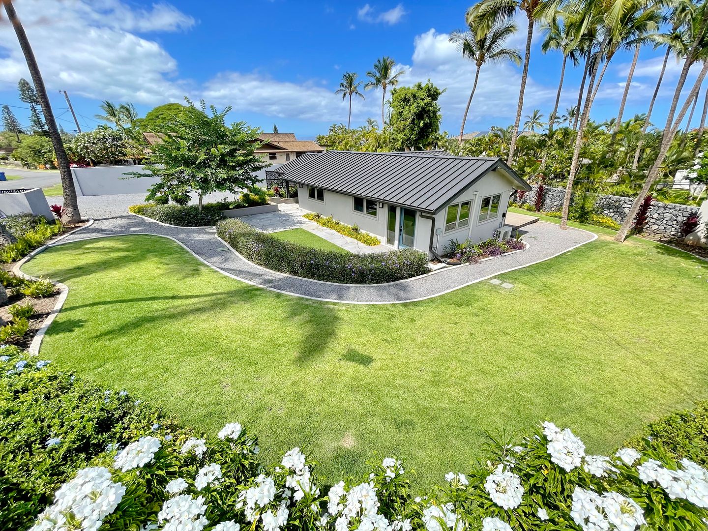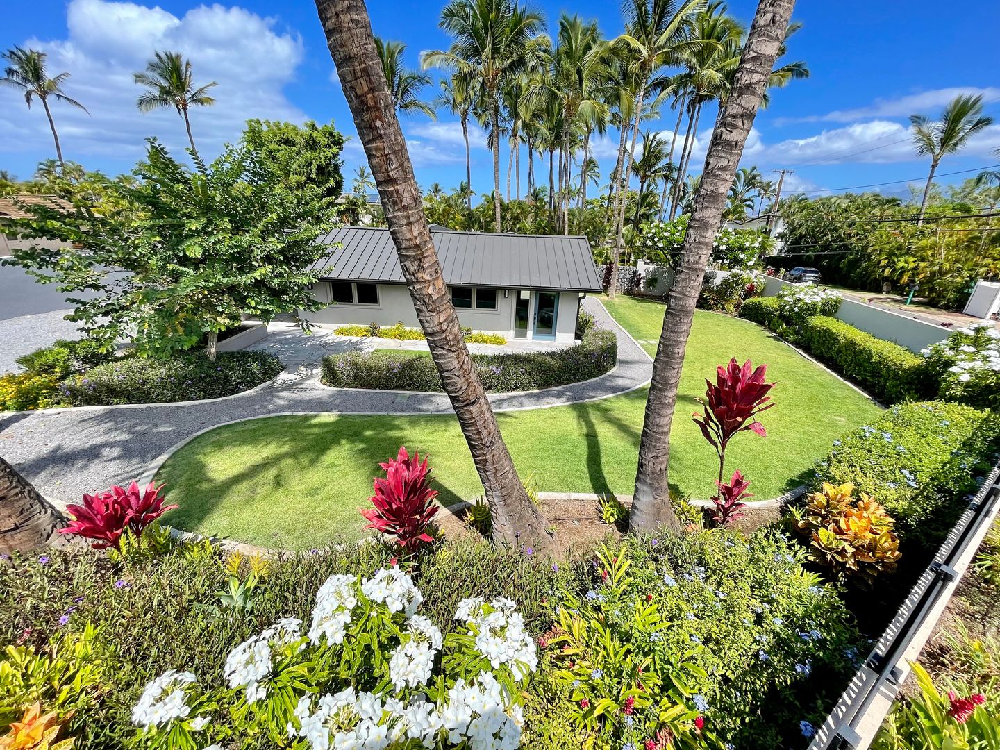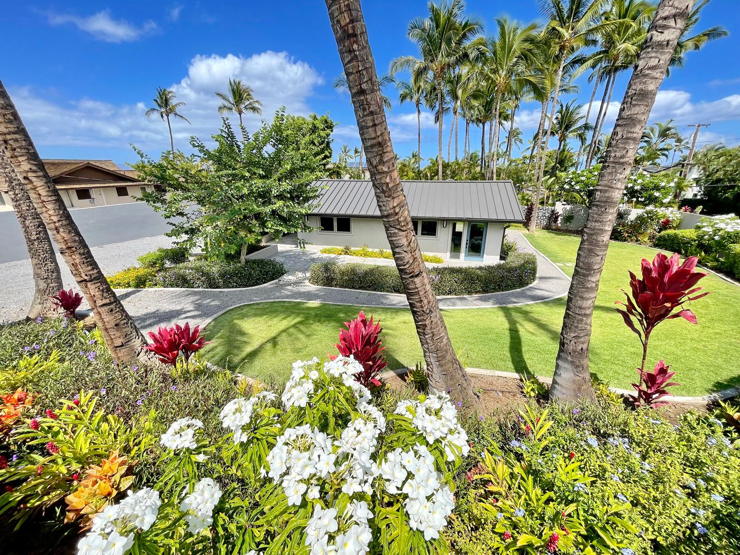 · Guest parking and walking paths lined with tropical palms, plants and flowers