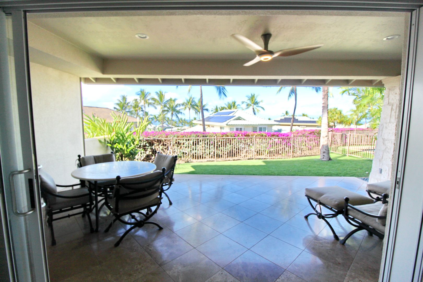 Step outside to your own private oasis: a beautifully furnished lanai complete with an al fresco dining area, BBQ grill, and lush, manicured lawn that cascades toward panoramic ocean and garden views—perfect for morning coffee or sunset cocktails.