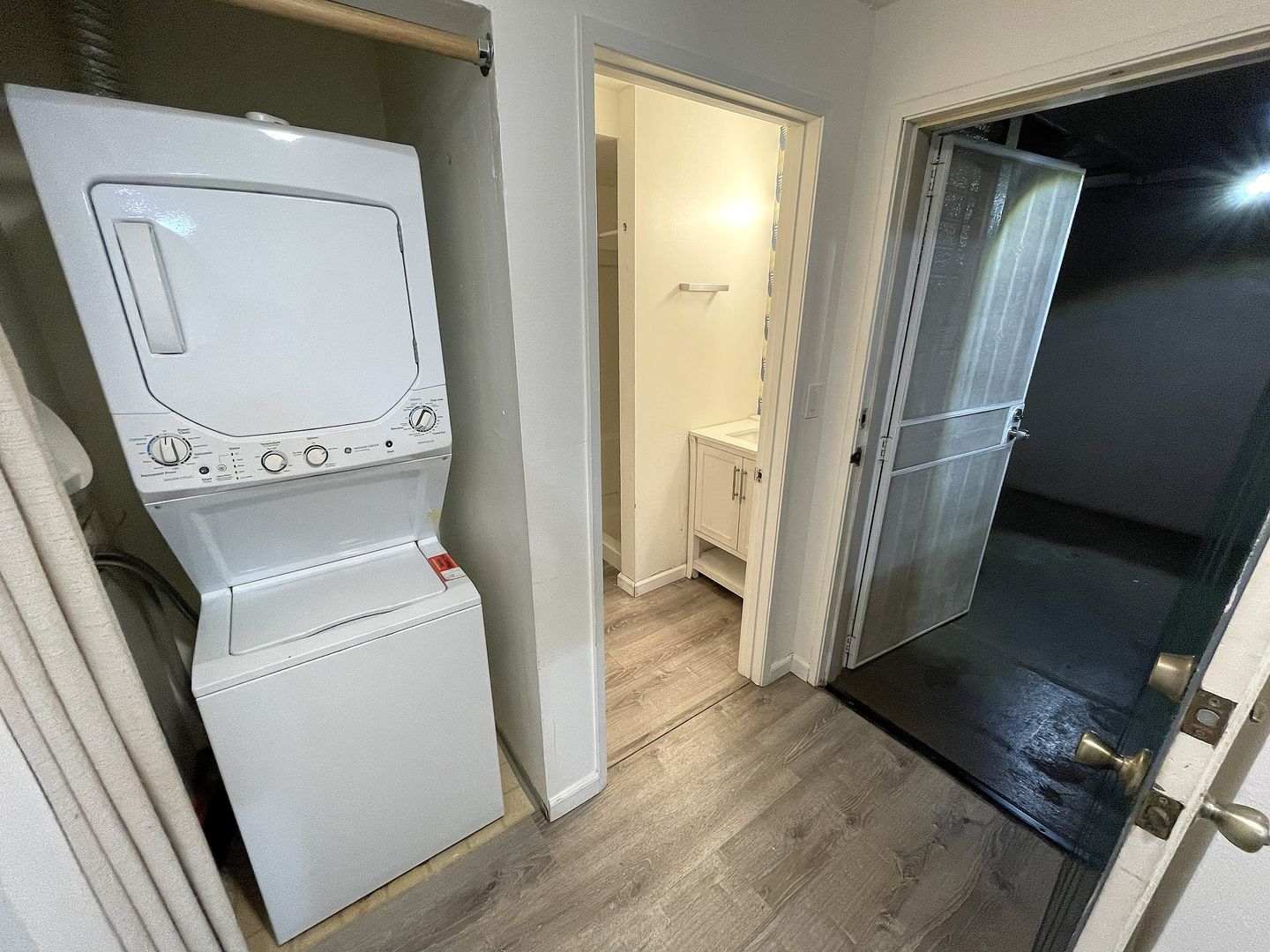 Additional upgrades include luxury vinyl plank and tile flooring throughout, updated bathrooms, modern lighting fixtures, ceiling fans, and air conditioning for year-round comfort. A stacked washer and dryer are also included for your convenience.