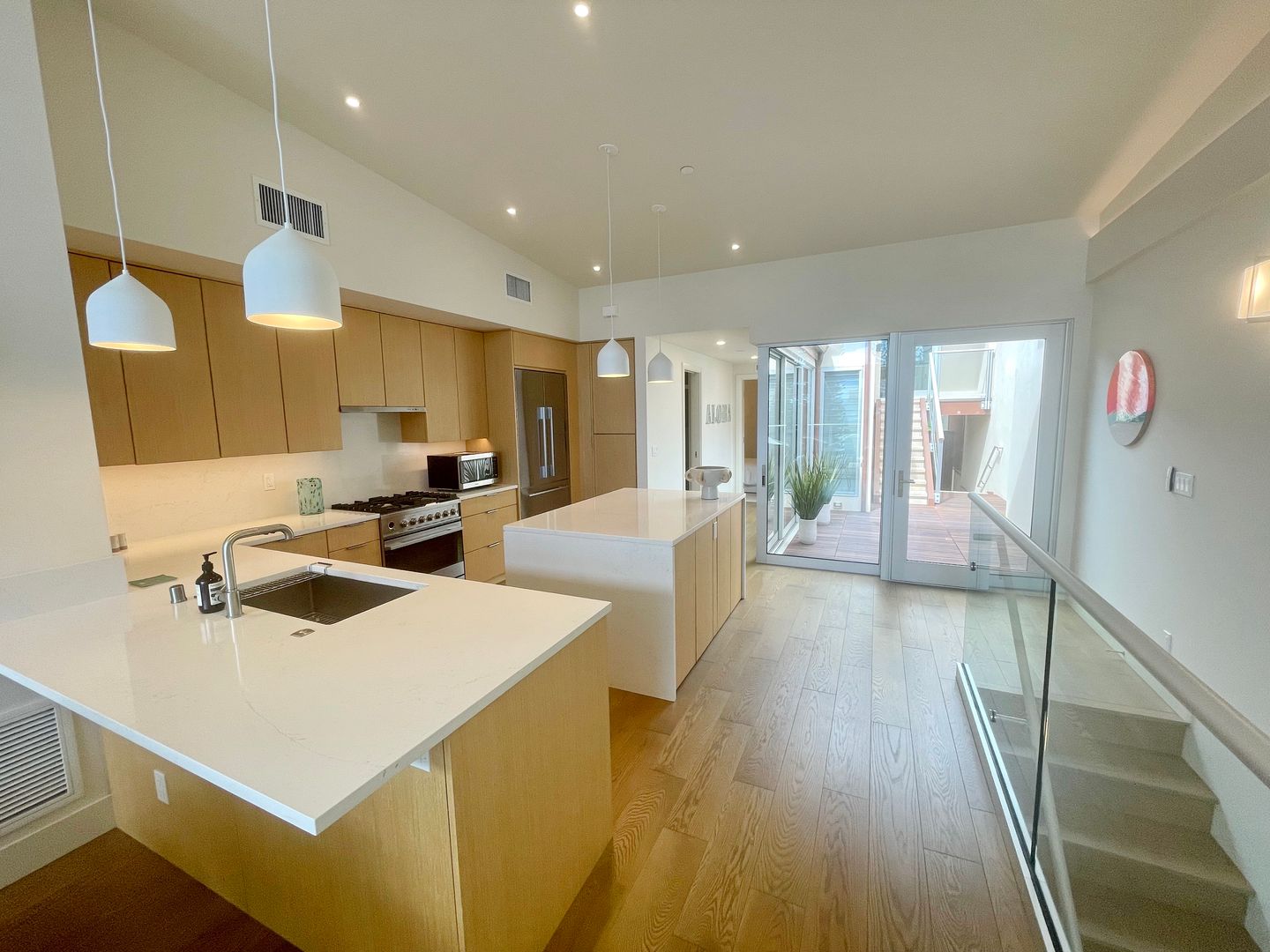 Enjoy seamless indoor-outdoor living with an open-concept layout, a private entry courtyard, and spacious lanais. High-end finishes include UV-treated dual-glazed windows, energy-efficient lighting, sleek Caesarstone countertops, custom walnut cabinetry, and large stackable washer and dryer. The chef’s kitchen is equipped for culinary excellence with premium Fisher & Paykel stainless steel appliances: a double-door refrigerator, gas range, and dual-drawer dishwasher.