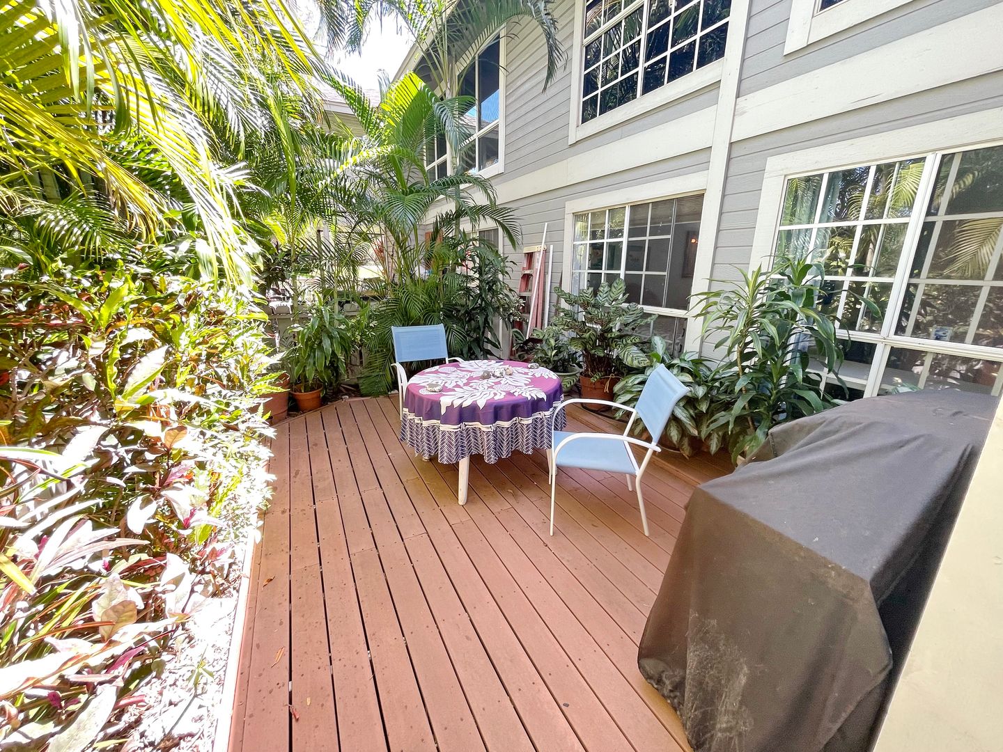 This mostly furnished 1-bedroom, 1.5-bathroom condo offers the perfect blend of comfort and convenience. Located on the ground floor, the unit features cozy side and backyards with lush tropical landscaping, providing a private retreat. Enjoy outdoor living with a BBQ, seating, and plenty of space to relax in your own quiet oasis.