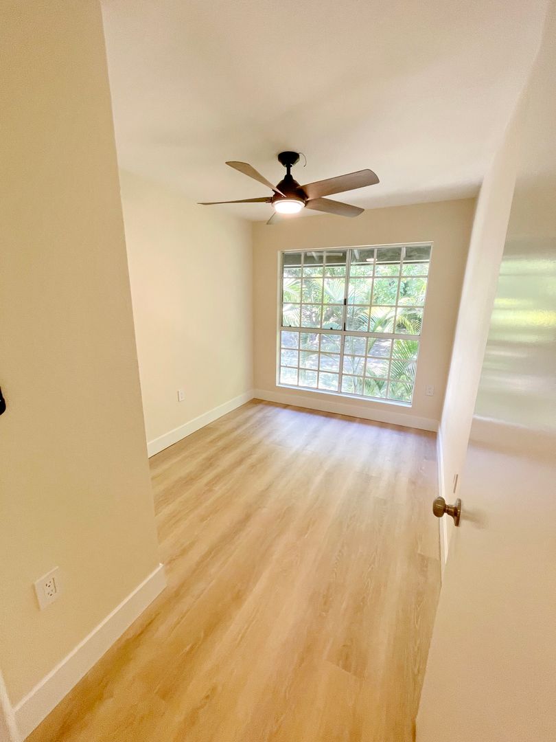 Unfurnished 2 BR, 1 BA condo is ready to move into now. The unit is has been updated with new ceiling fans, paint, A/C, luxury vinyl laminate flooring, baseboards, doors, light fixtures, appliances and more.