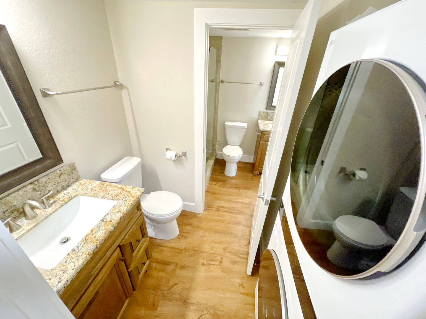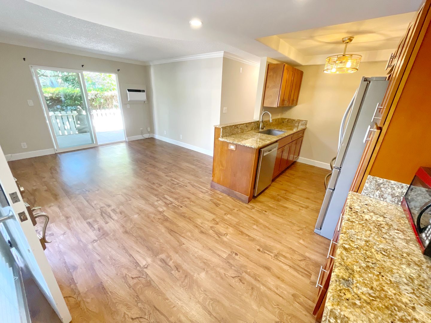 Welcome to life by the beach! Prime location, gorgeous, ground floor 2 bedroom/1.5 bath condo with a nice yard with artificial turf and a covered lanai. The interior is immaculate, remodeled with beautiful wood cabinets, granite counters, newer appliances, luxury vinyl planking throughout. The owner's have taken great pride and care in getting the condo ready for its next lucky tenants. Great airflow and natural light add to the ambiance. There is plenty of room for gardening and outdoor living. There is one assigned parking stall.
