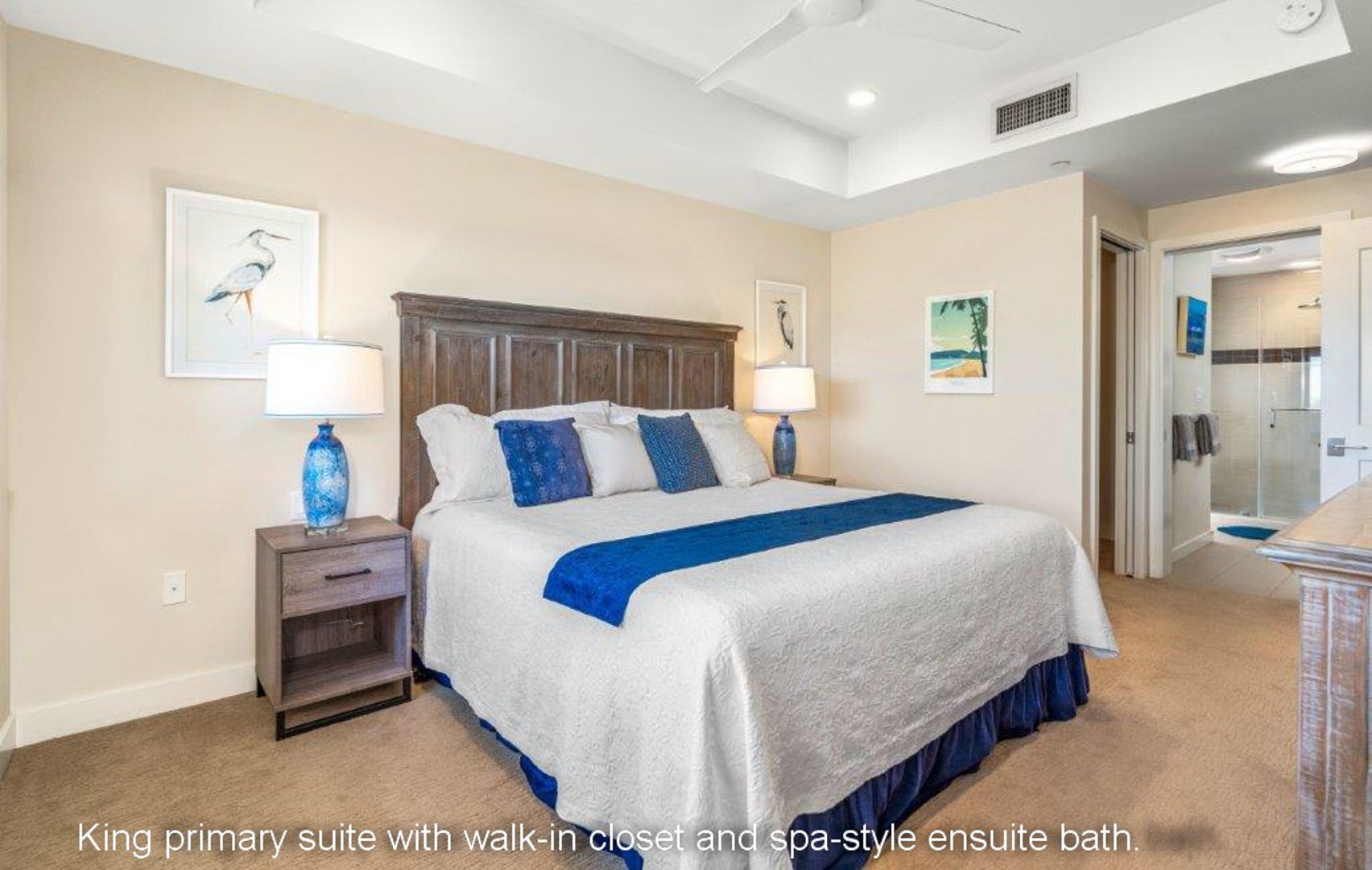 The primary suite offers a king bed, spa-style ensuite bath, and walk-in closet. The second bedroom provides flexibility as a guest room, media room, or dedicated home office.