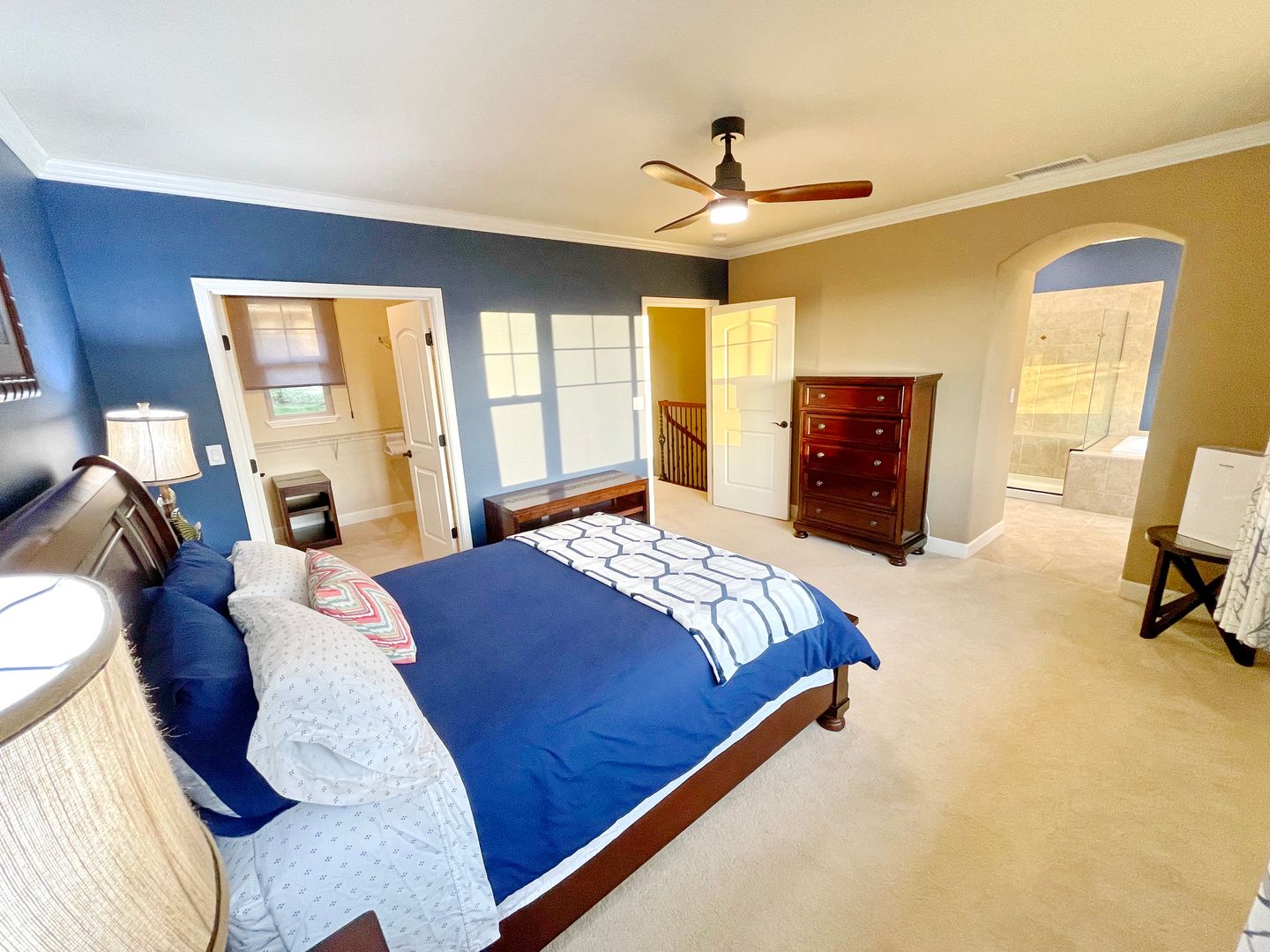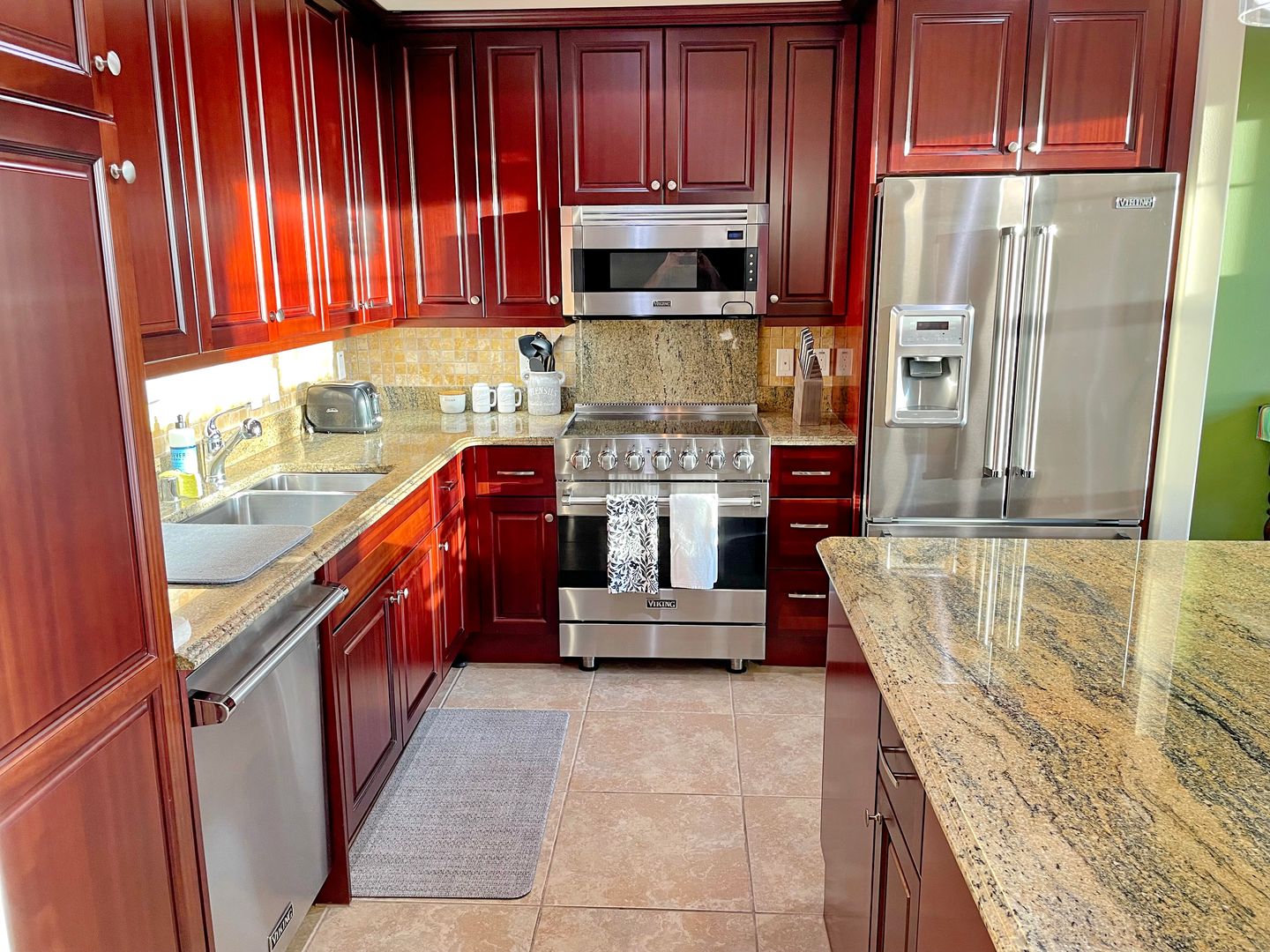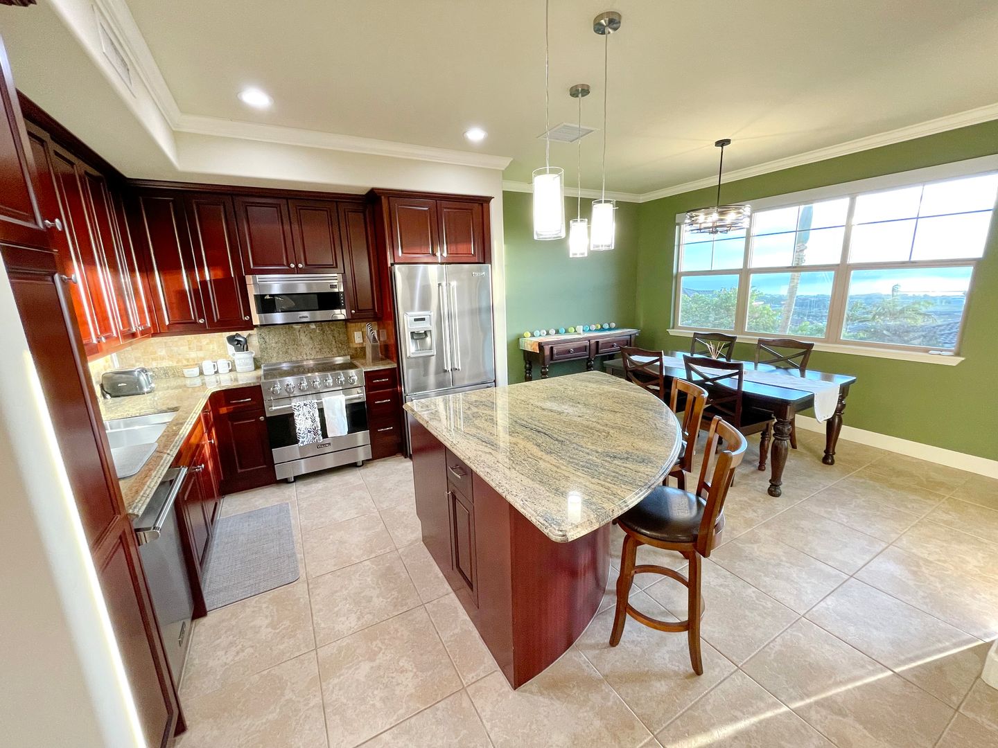 Step into a thoughtfully designed space featuring all Viking stainless steel appliances, solar hot water heater, crown molding, and brand new remote-controlled custom blinds throughout. Each spacious bedroom offers a private en suite bathroom, providing the perfect setup for privacy and ease.