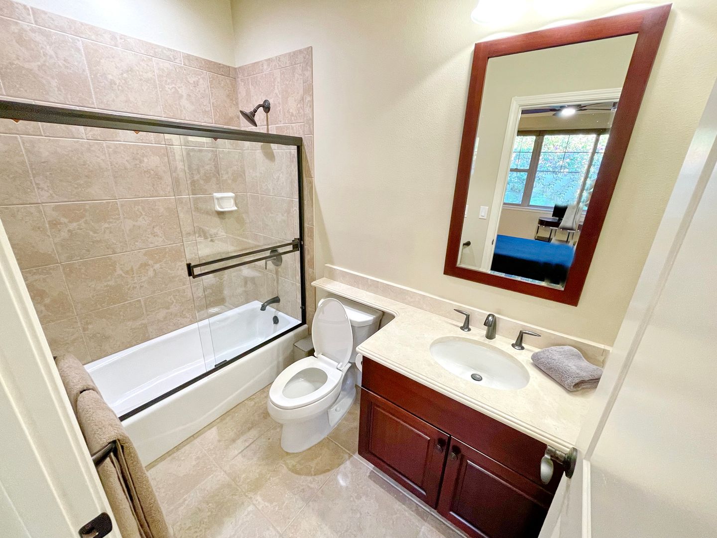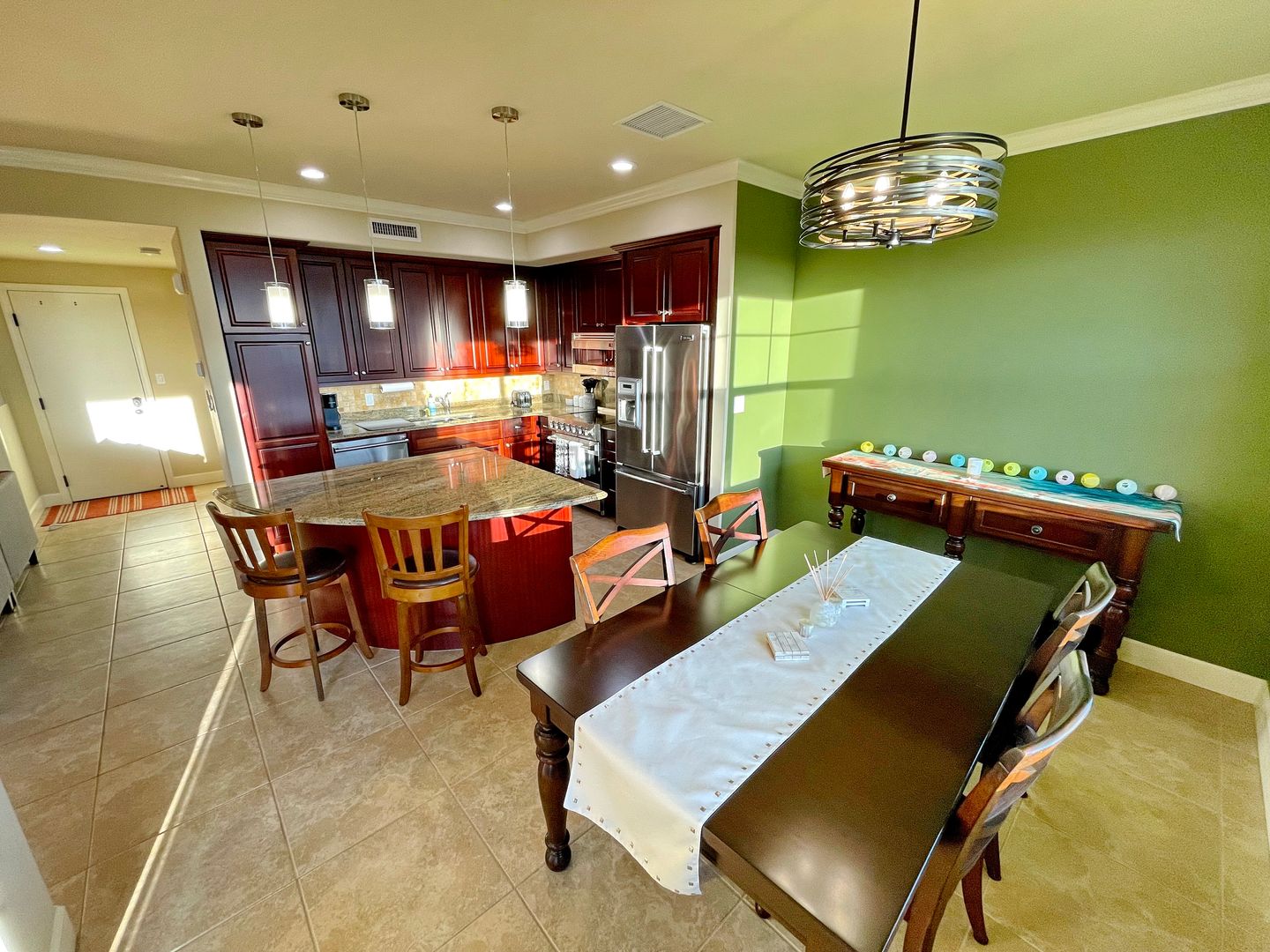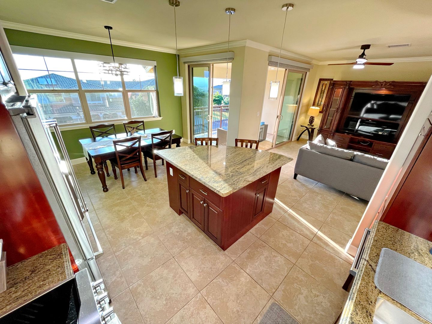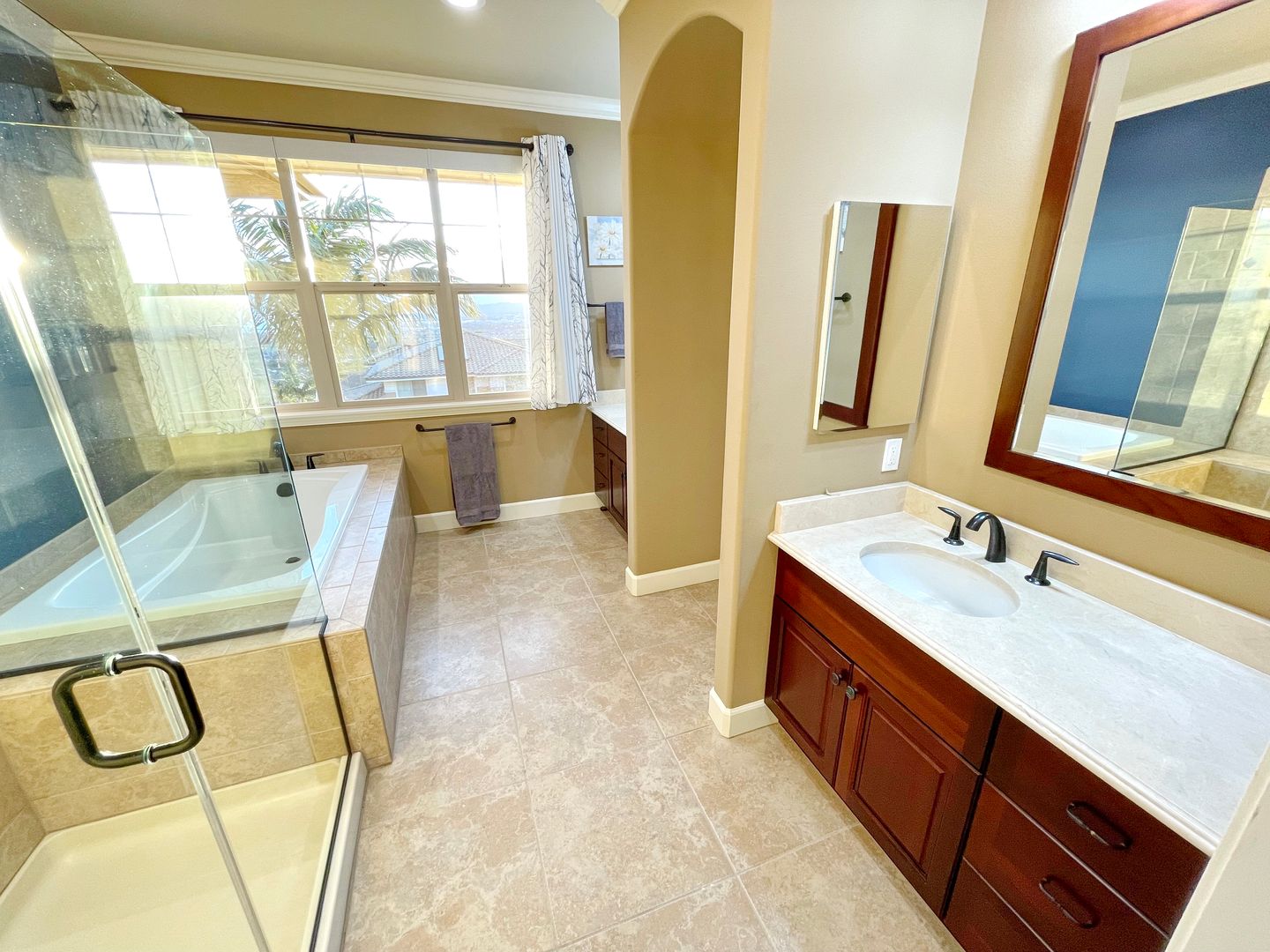 Step into a thoughtfully designed space featuring all Viking stainless steel appliances, solar hot water heater, crown molding, and brand new remote-controlled custom blinds throughout. Each spacious bedroom offers a private en suite bathroom, providing the perfect setup for privacy and ease.